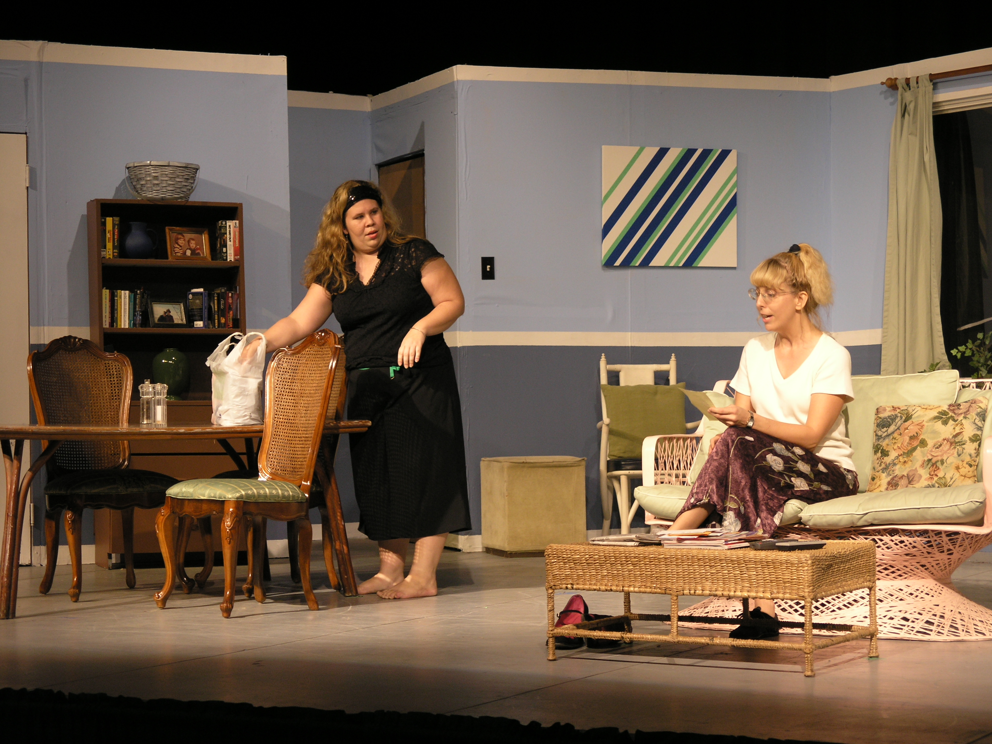 While very dated, it was a well-constructed play.  We did our best to overcome its age, and we turned it into very physical comedy.  I told the cast that it was, in effect, an episode of “I Love Lucy”, with the brunette in the photo (wose name I’ve forgotten, sorry) playing Lucy, the blonde (Lisa Vaughan) playing Ethel, Mariah Mays playing Ricky, and Emily Van Buren playing Fred.