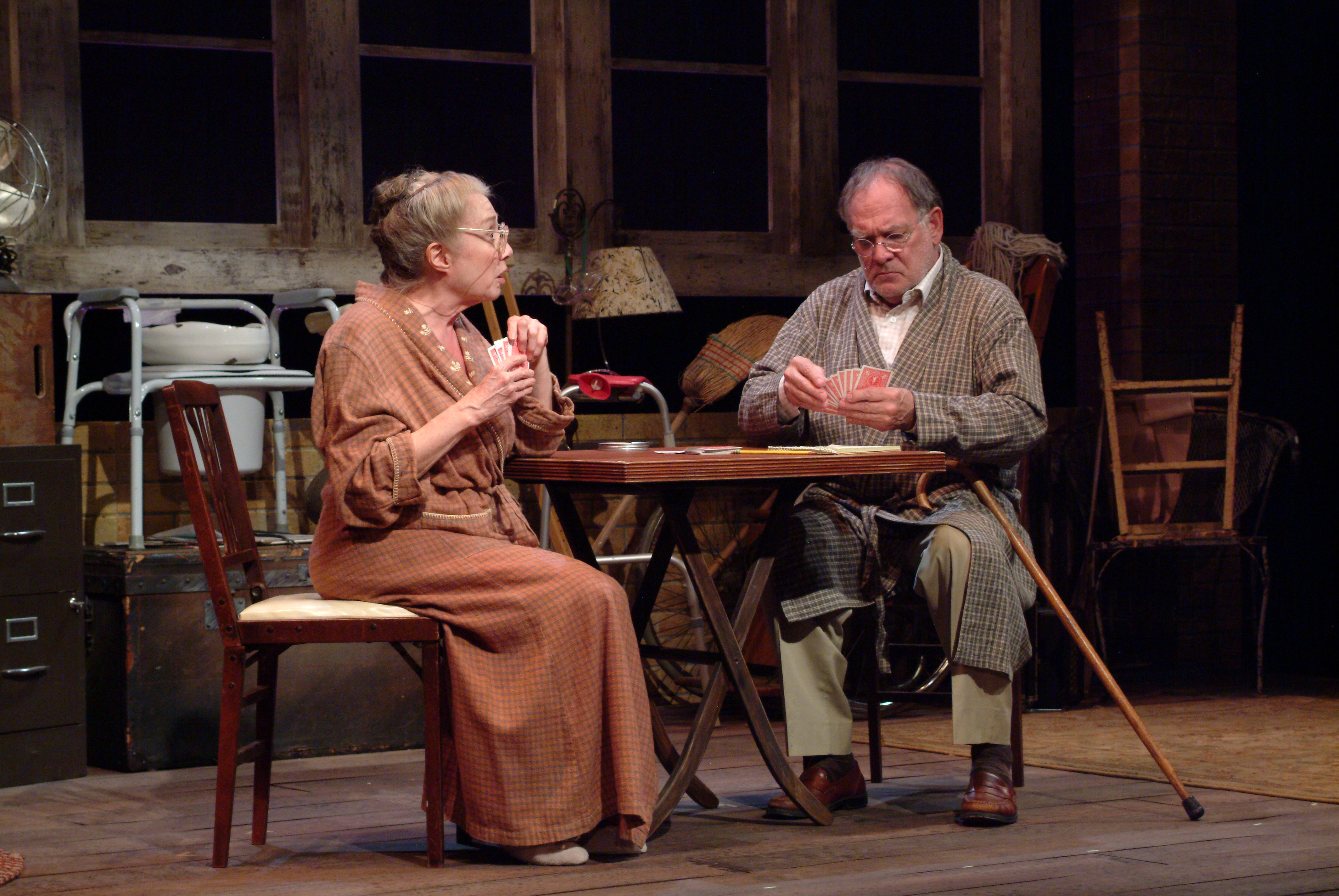 Card games. You might not think of a card game as requiring blocking, but it does. Plays like The Gin Game and Born Yesterday have dialogue that refers to certain things happening in the card games the characters play. Learning when to draw and discard, when to deal, and when to shuffle your cards around in your hand, all while saying your lines, takes repeated practice to make it happen effortlessly. The challenge is made all the more difficult because the cards you are looking at aren’t going to be the ones that are actually in the character’s hand. That is, you may call “Gin” when you don’t actually have “Gin.”